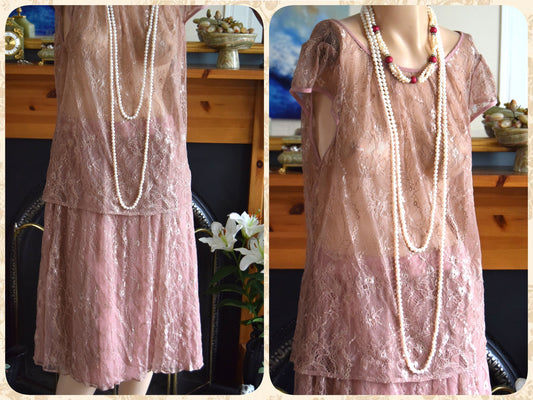 vintage 1920s kaftan dress bohemian gypsy hippy boho wedding Art Deco bride dusty pink wedding dress and size UK 16 18 US 12 14