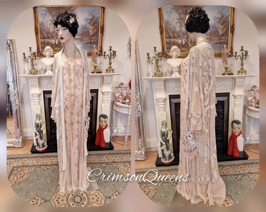 Divine Vintage nude Lady Rose Downton Abbey maxi beaded sequinned embellished dress 1920's flapper wedding occasion dress Size UK 20 US 16
