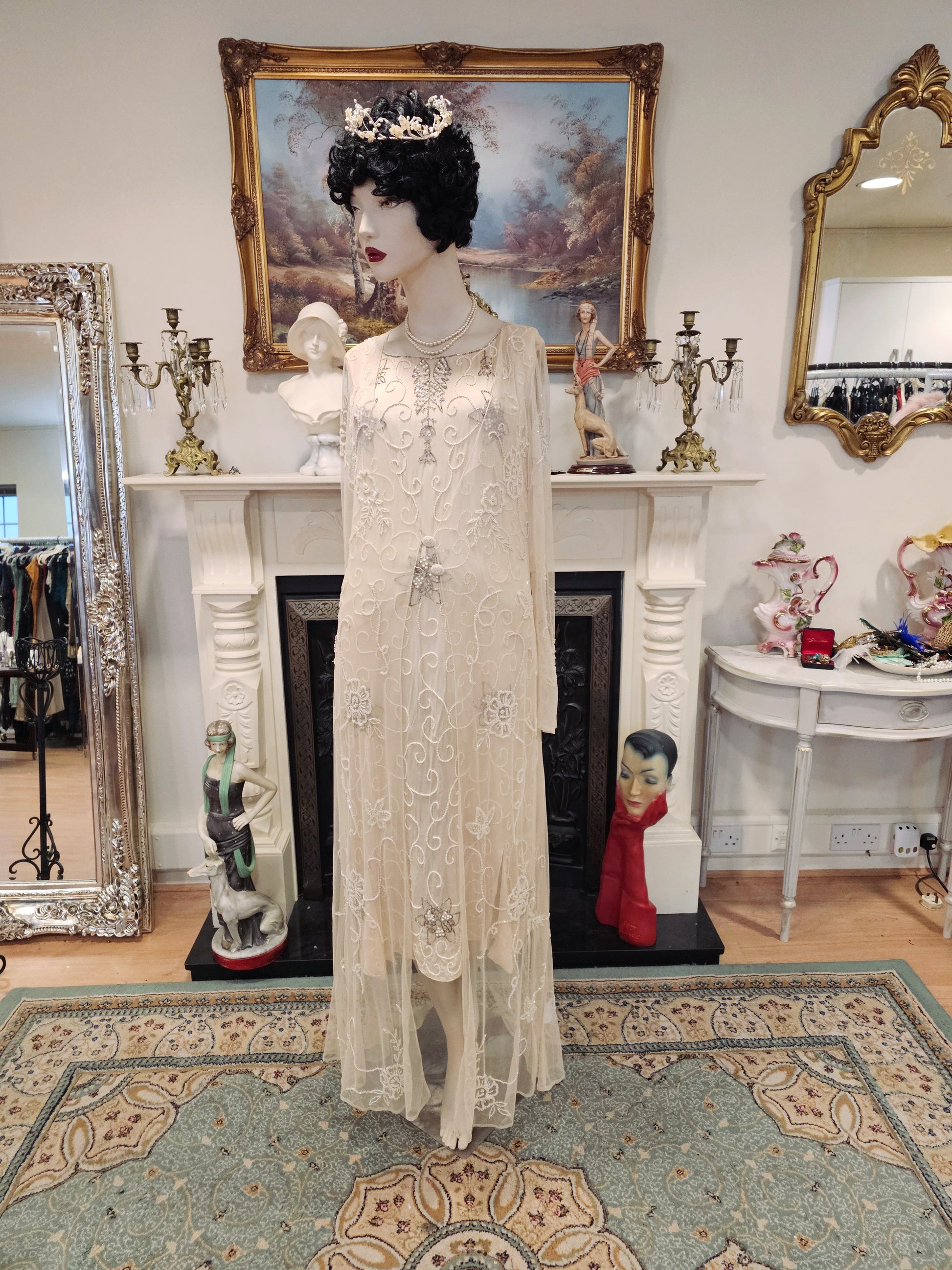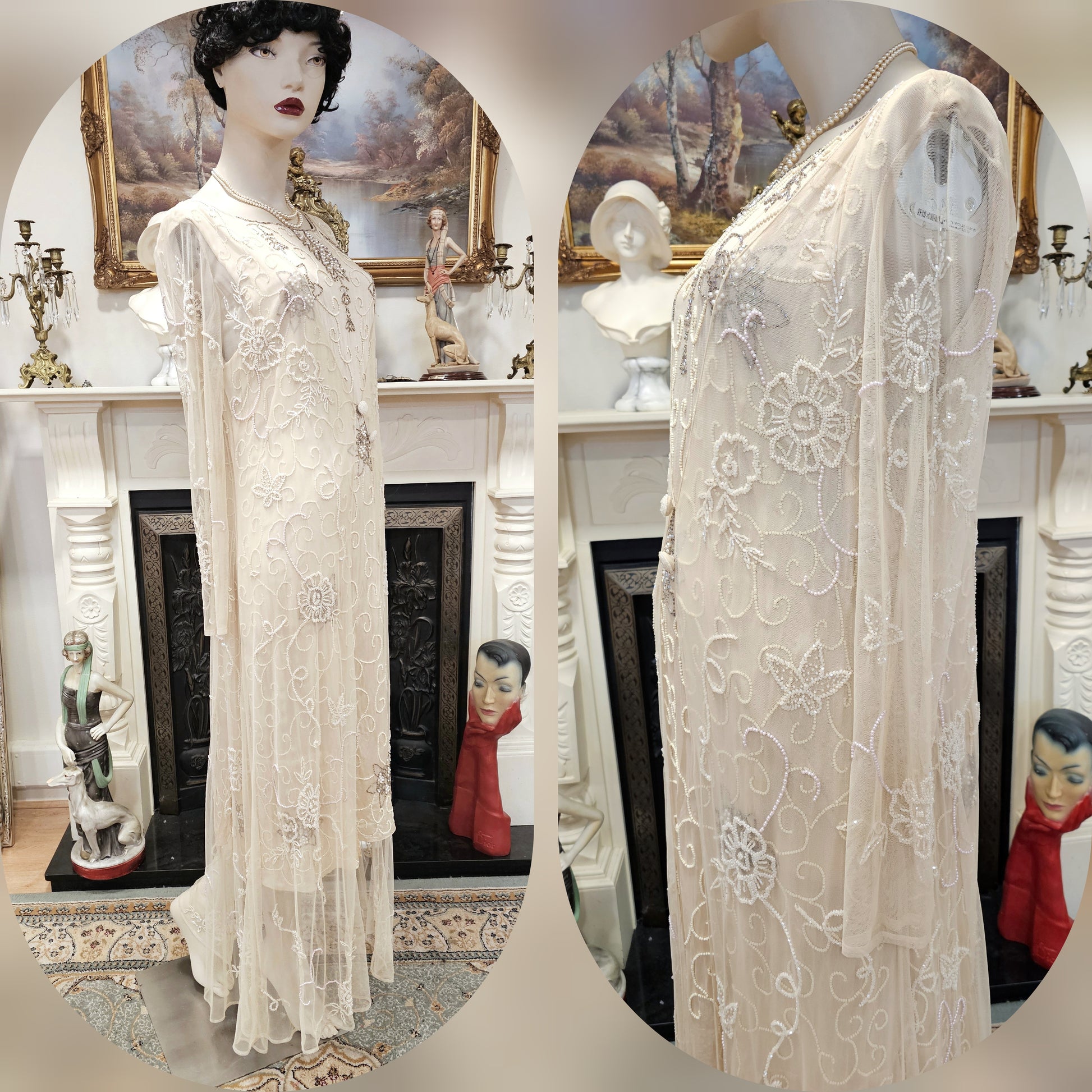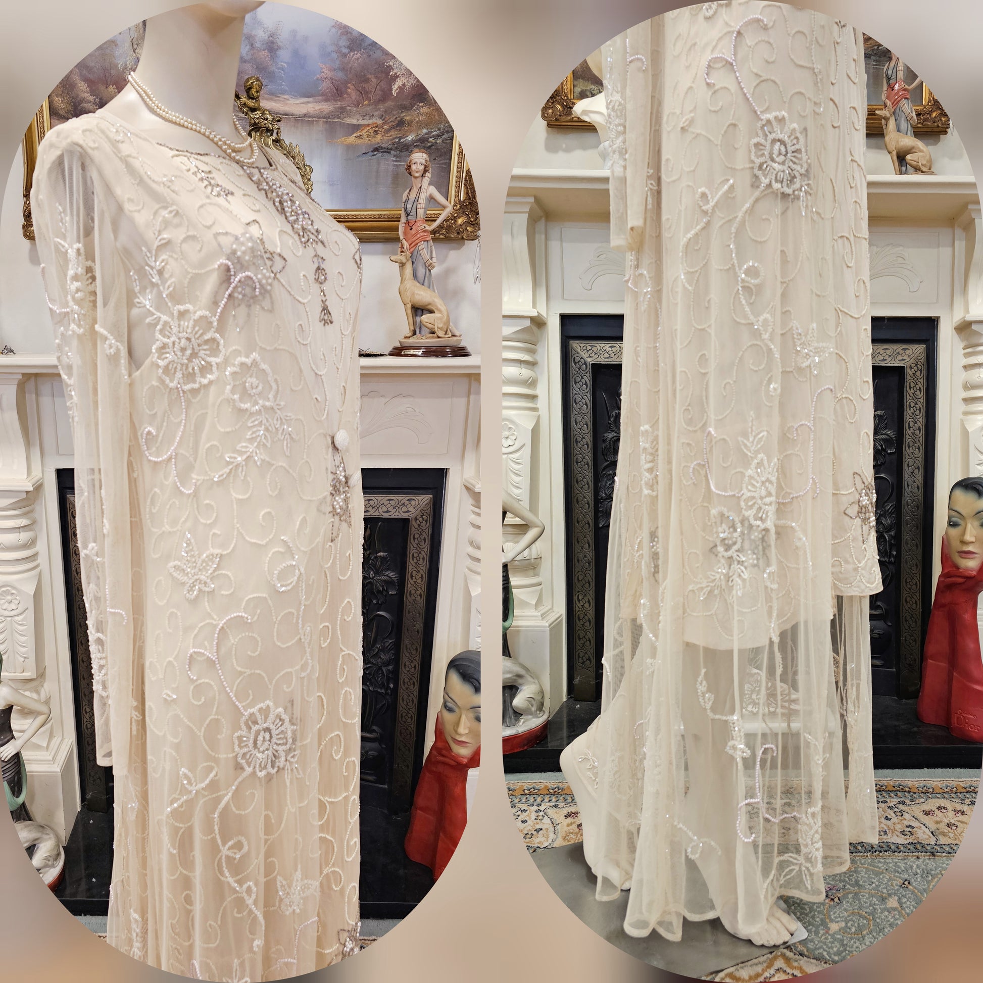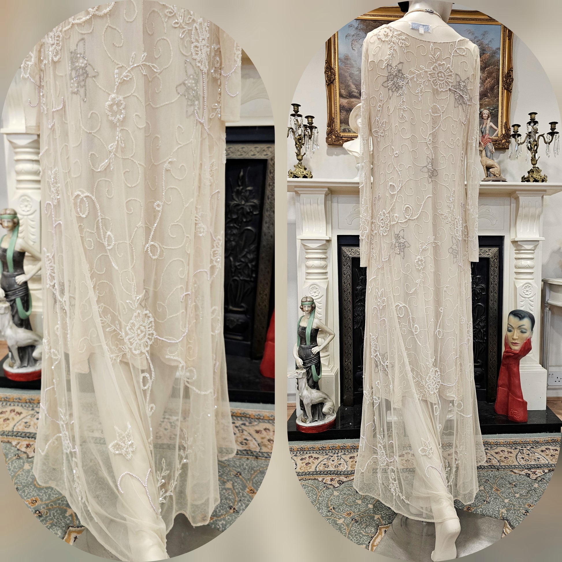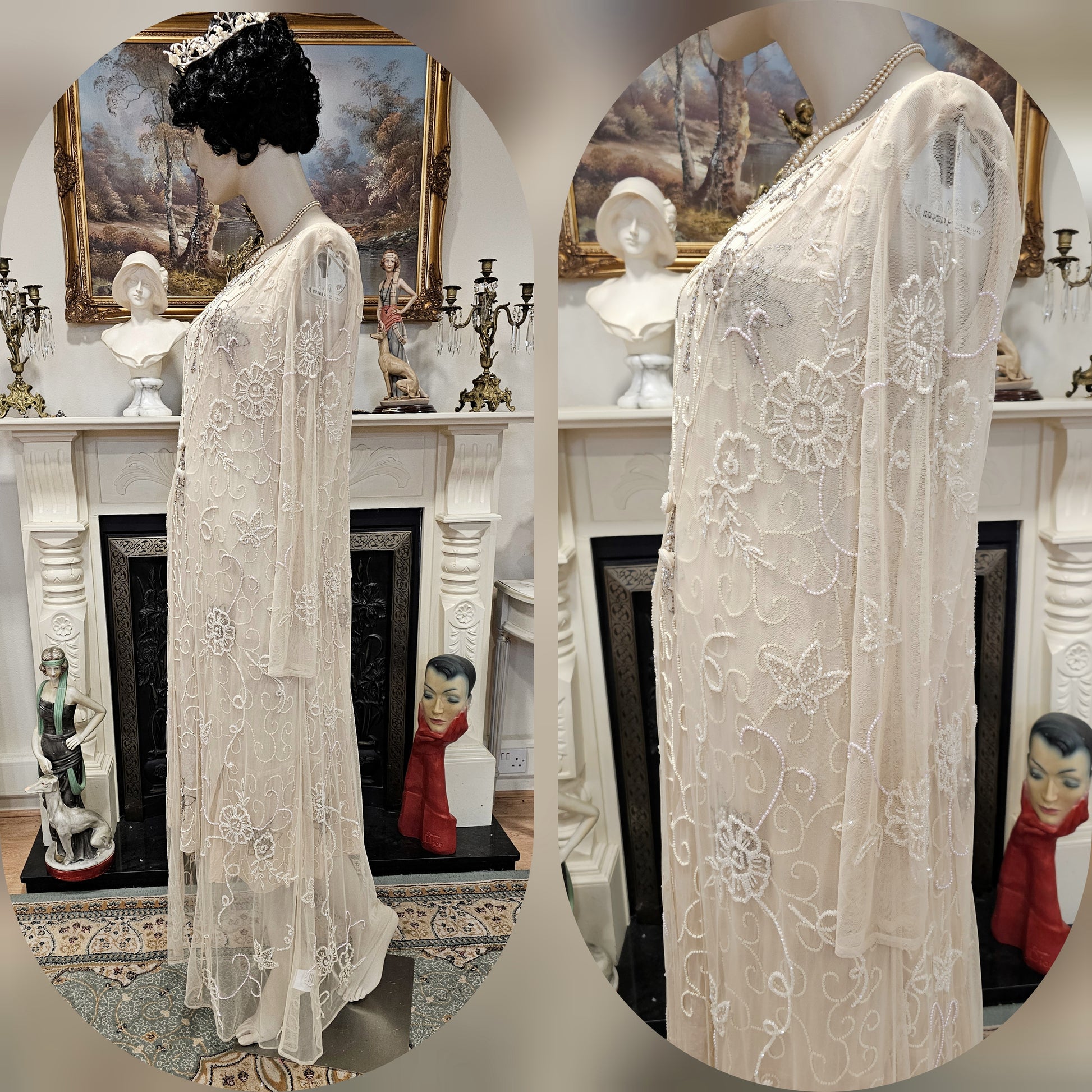 Extraordinary vintage Art Deco 1920s lace wedding long jacket duster wedding bridal coat cover size UK 10 US 6