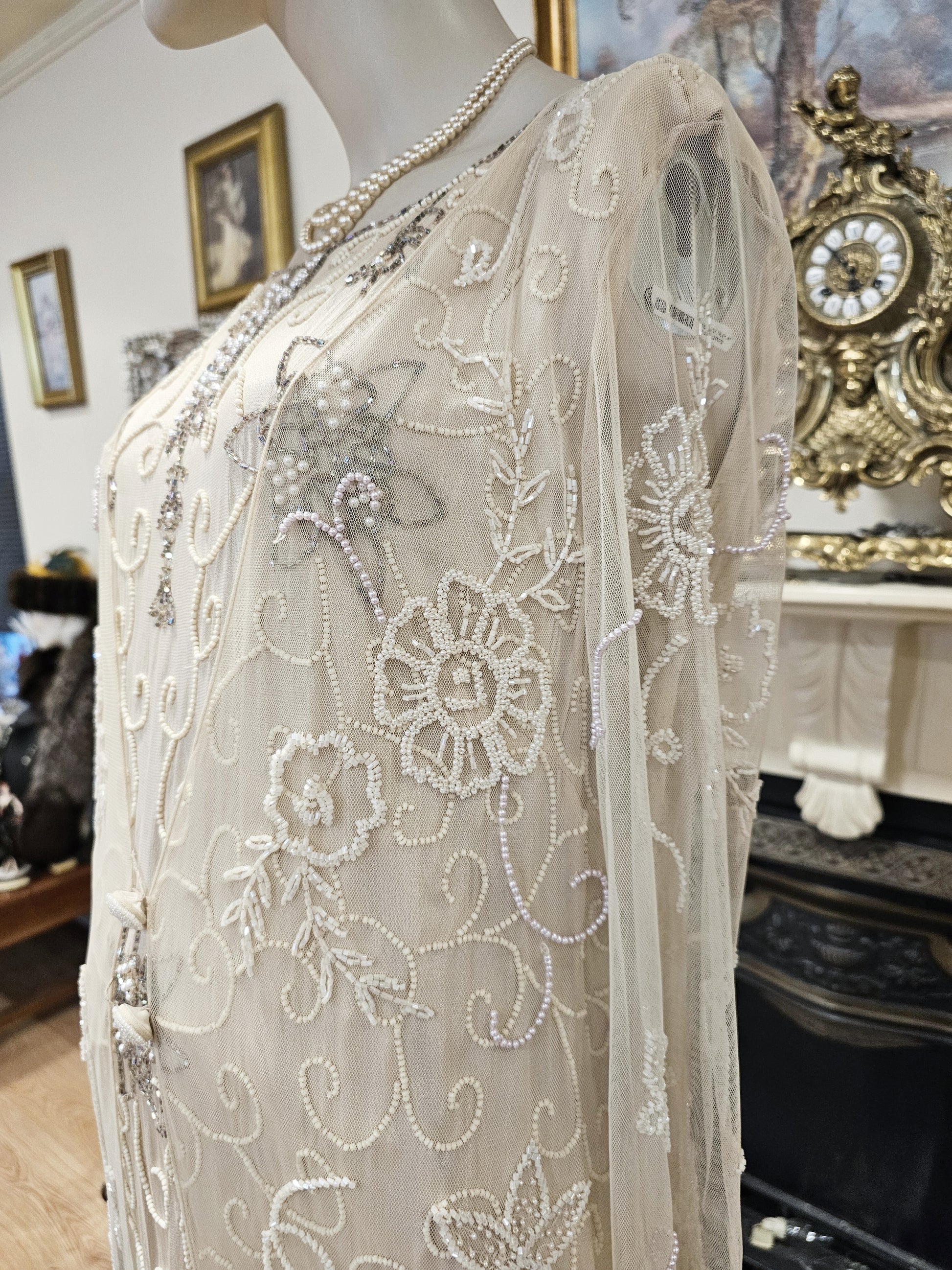 Extraordinary vintage Sue Wong Art Deco 1920s lace wedding long jacket duster wedding bridal coat cover size UK 6 US 2